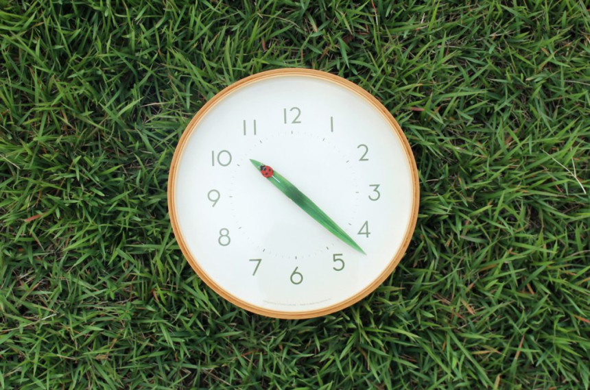 앉아서 쉴 수 있는 곳을 뜻하는 Perch는 잎사귀의 모양을 한 시계의 시침과 분침으로