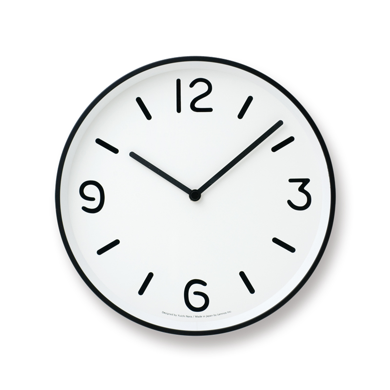 둥근 시계 테두리, 12개의 숫자, 시침과 분침. 시계를 구성하는 이 모든 요소들을 검은 선이라는 단일 요소에 의해 디자인하였습니다.