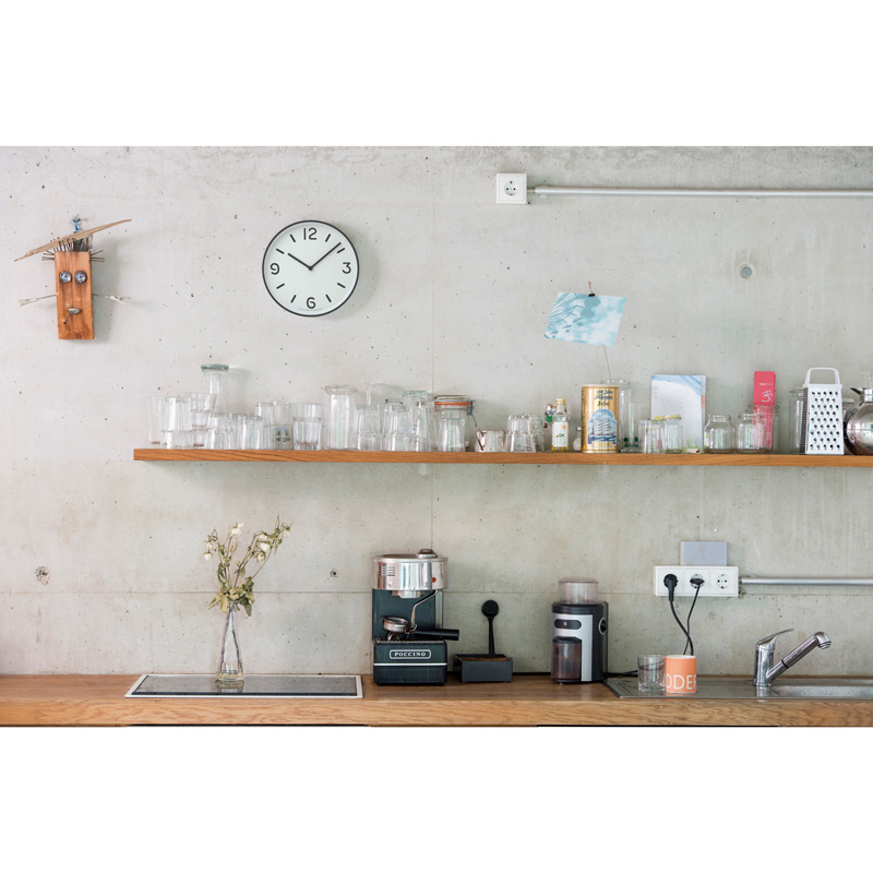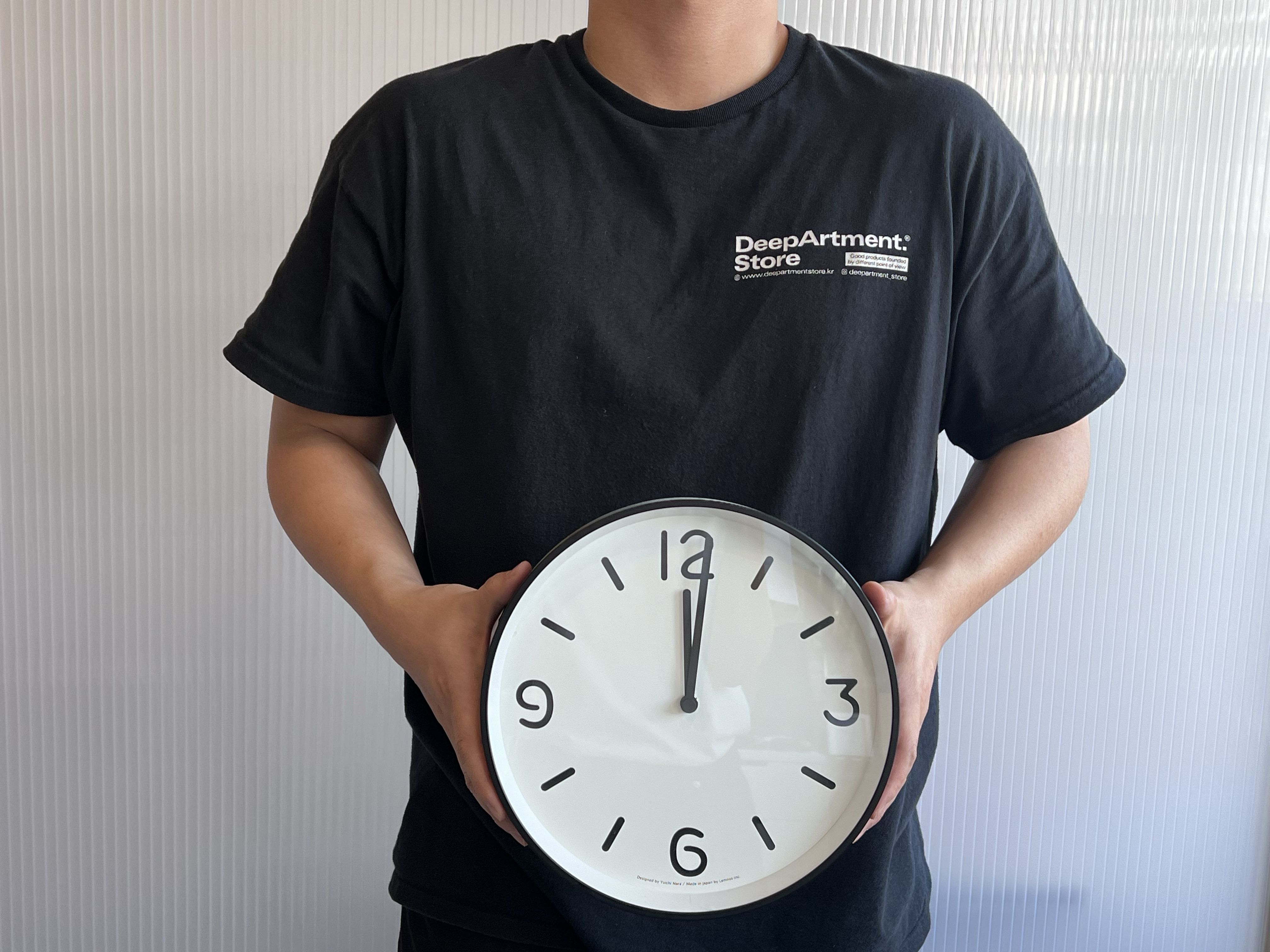 심플하고 모던한 공간, 하얀 벽에 잘 어울리며 무소음으로 조용하게 시간을 전해주는 시계입니다.