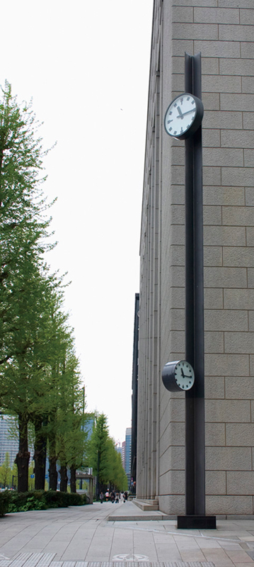 히비야 교차로 모퉁이에 선 심플하고 박력 있는 디자인은 시인성이 높은 공공 시계의 모델이 되었습니다.