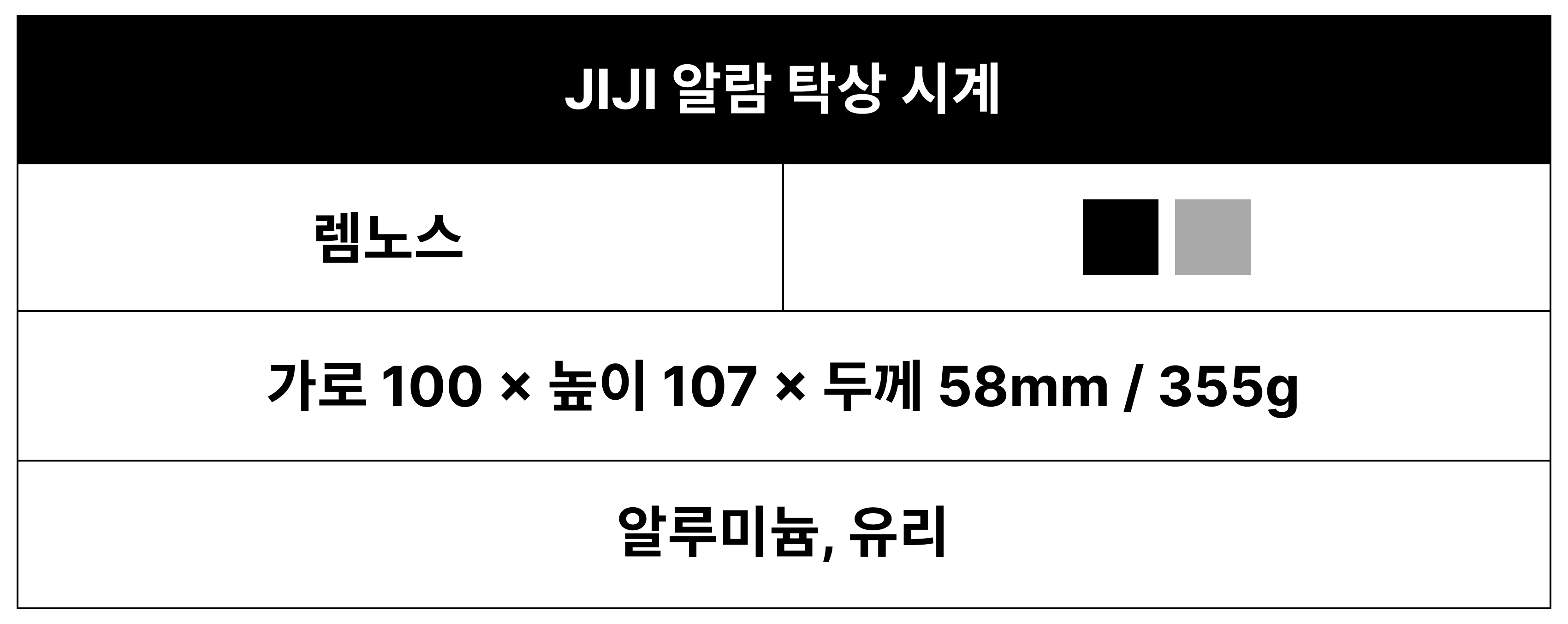 날렵함을 남기면서도 12개의 숫자를 보기 쉬운 디자인이 특징인 JIJI alarm 탁상시계입니다.