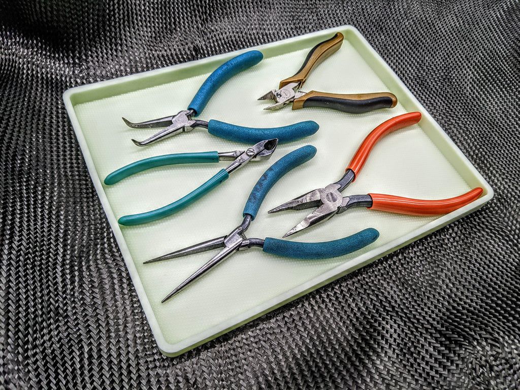 논슬립 트레이는 모든 핀과 부품이 작업대에서 굴러떨어지지 않도록 사용됩니다. 미국 현지 항공 전자 기술자들이 사용하는 트레이로 작은 나사같은 부품들을 잃어버리는 것을 방지해주면서도 깔끔한 작업 공간으로 유지할 수 있습니다. 골프공 패턴의 요철로 마감되어 미끄러짐을 최대한 방지합니다. 작업 트레이, 의료용 시술 트레이, 주방용 트레이 등으로 사용됩니다.