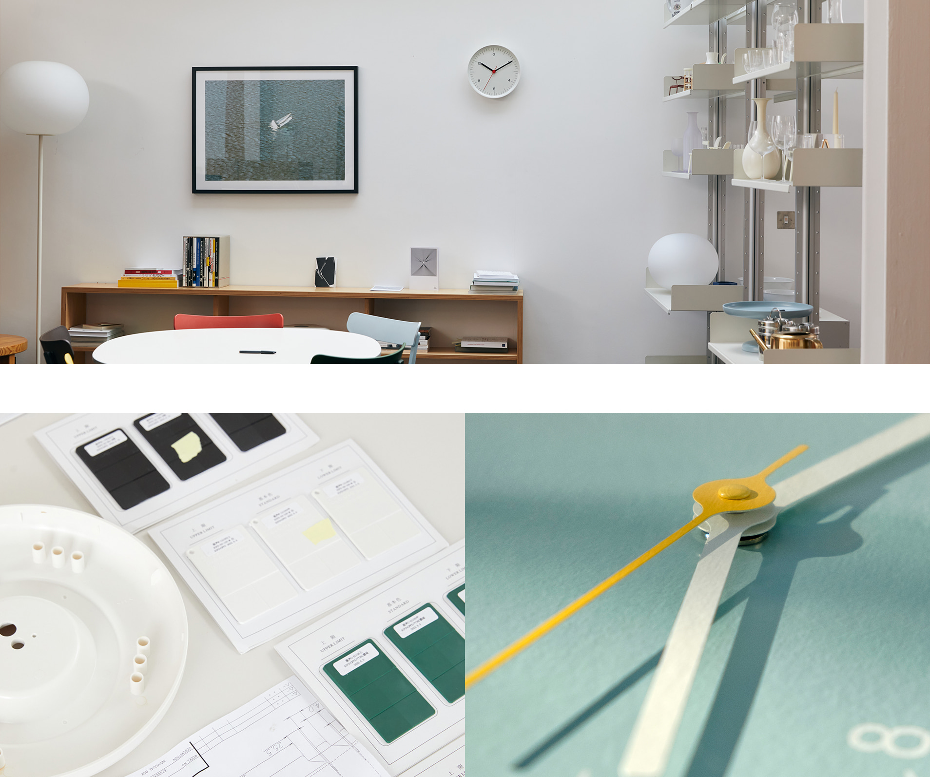 이 시계는 걸기 쉽고 똑딱거리는 소리가 나지 않는 부드러운 초침 움직임이 특징입니다. 어느 공간에도 적응할 수 있는 색상입니다.