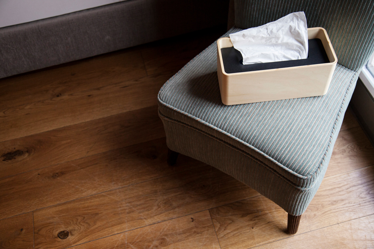 숙련된 일본의 장인들에 의해 제작된 스탁 티슈 케이스는 부드러운 목재와 모던한 디자인이 어우러져 온화한 분위기의 연출이 가능합니다. 한 장의 플라이우드를 빙 둘러 라운드시킨 티슈 케이스. 시중에서 판매하는 일반적인 티슈곽 1개를 모두 수납할 수 있다는 실용적인 아이디어 덕분에 생긴 모양입니다.무엇보다 그 심플하고 미니멀 디자인이 매력입니다.