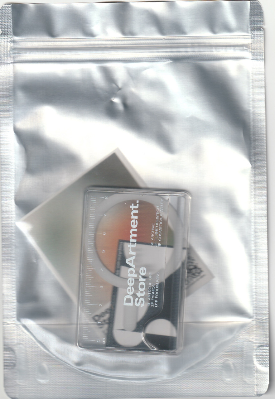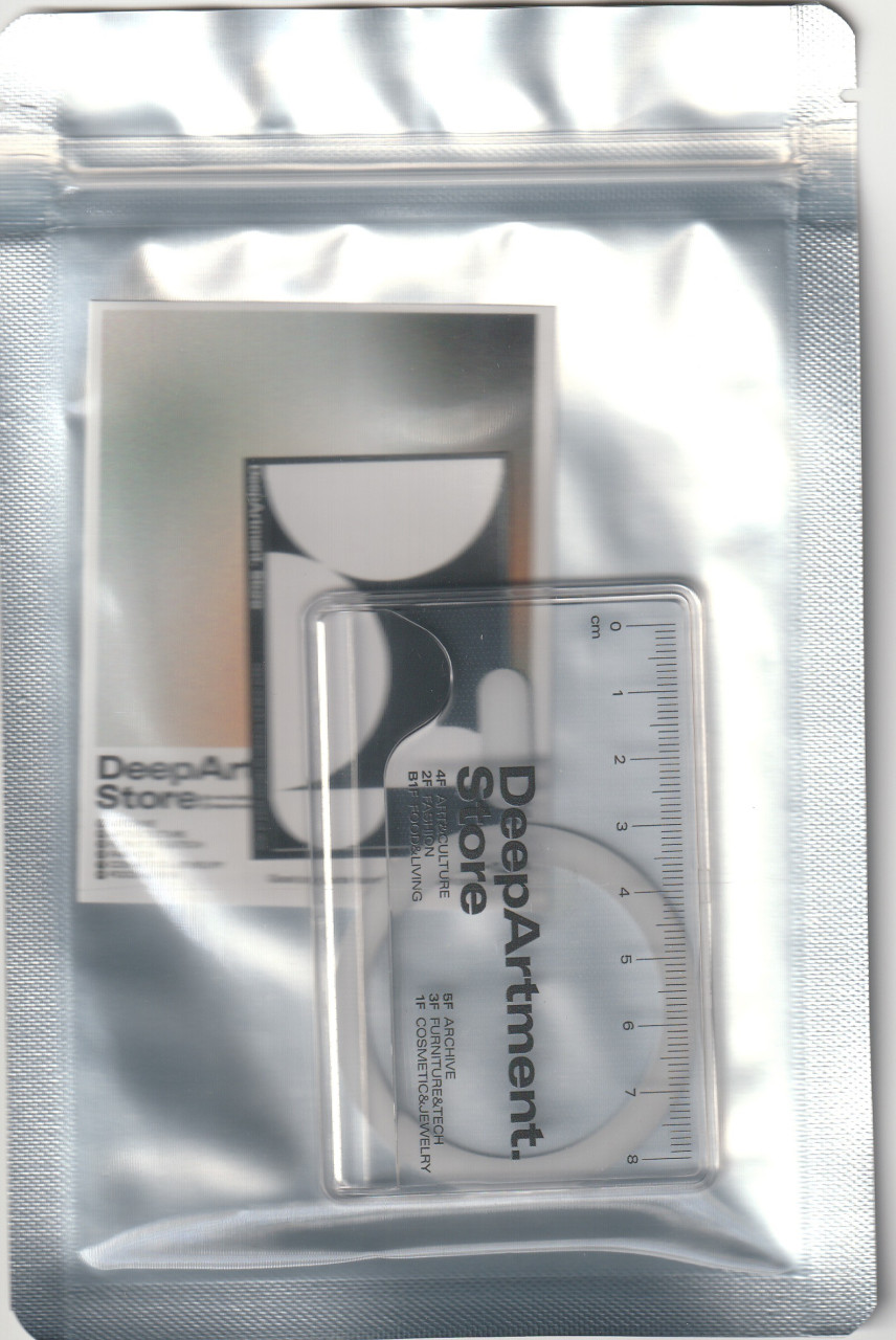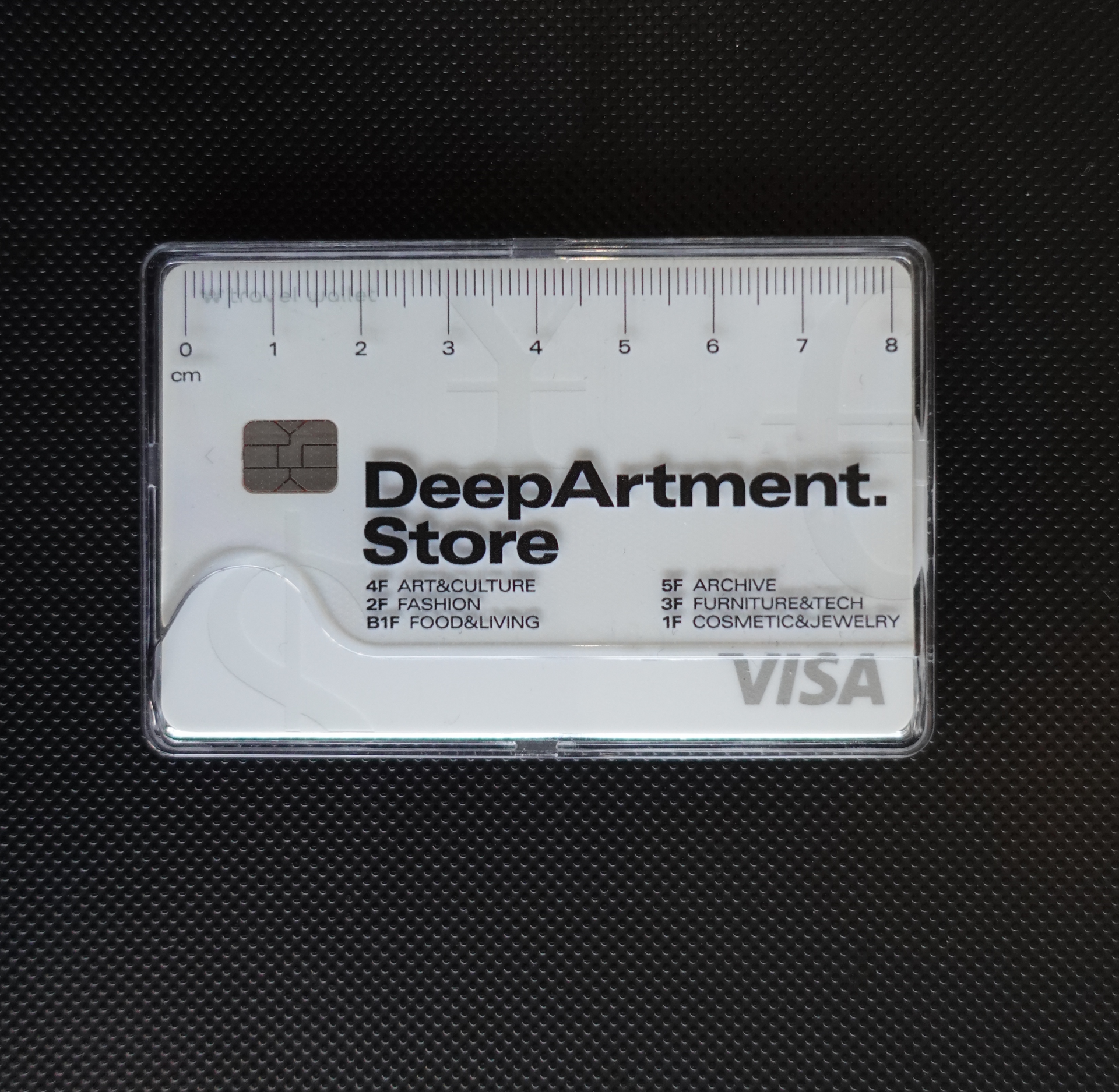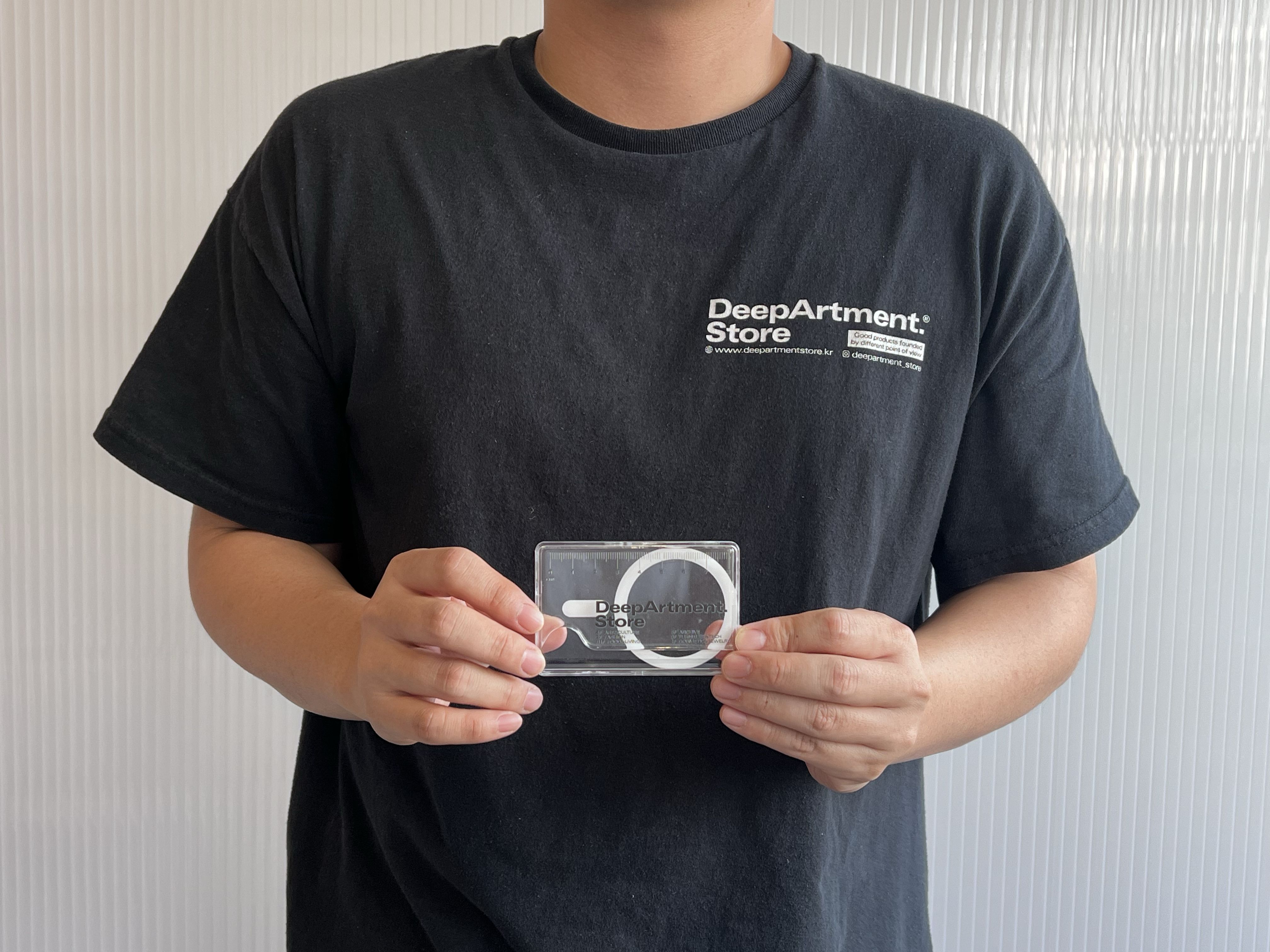 딥아트먼트 스토어의 로고와 8cm의 줄자가 들어간 하드타입 카드케이스입니다.