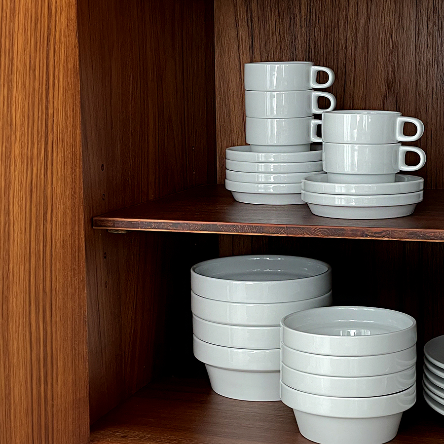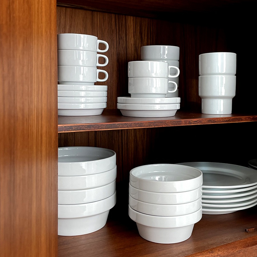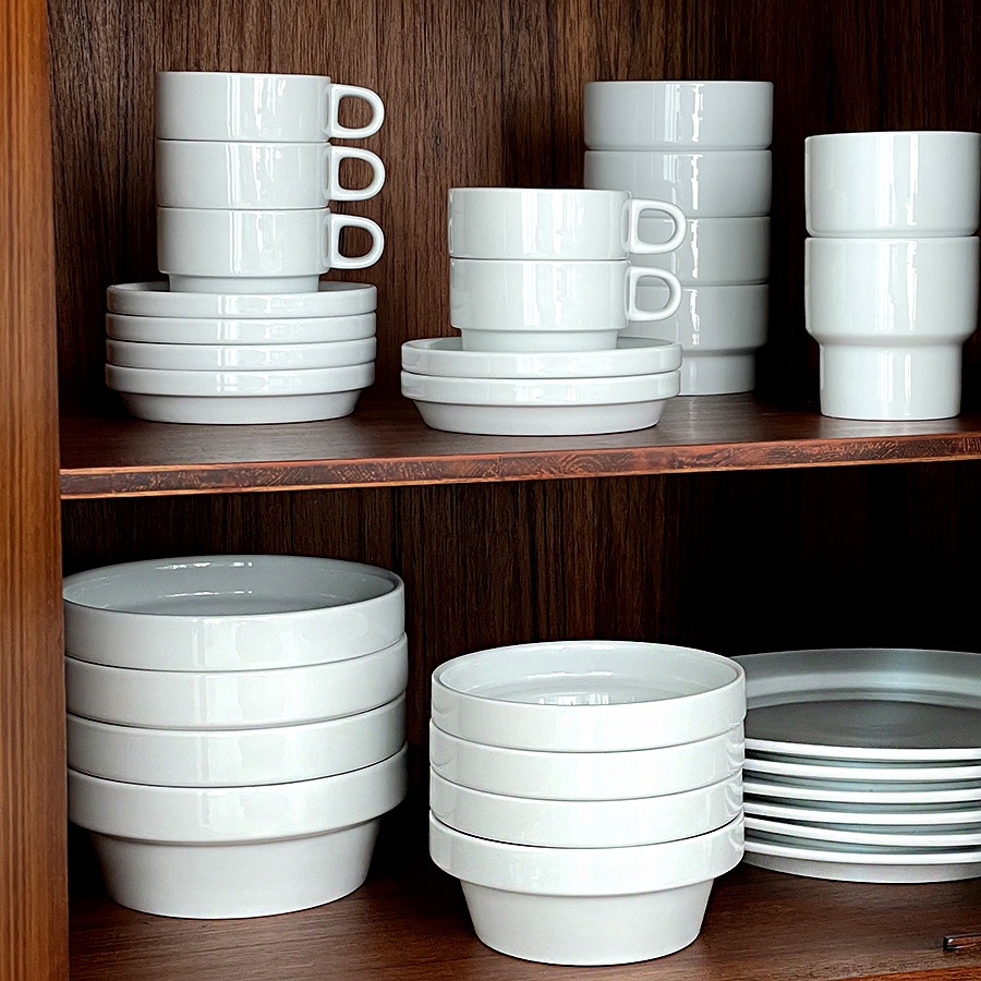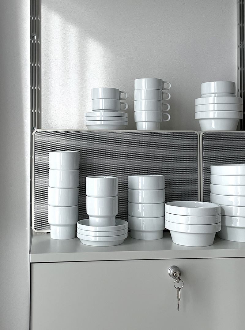 군더더기 없으면서도 같은 지름의 제품들이 스택킹되는 디자인은 바우하우스의 정수를 담아냈습니다.